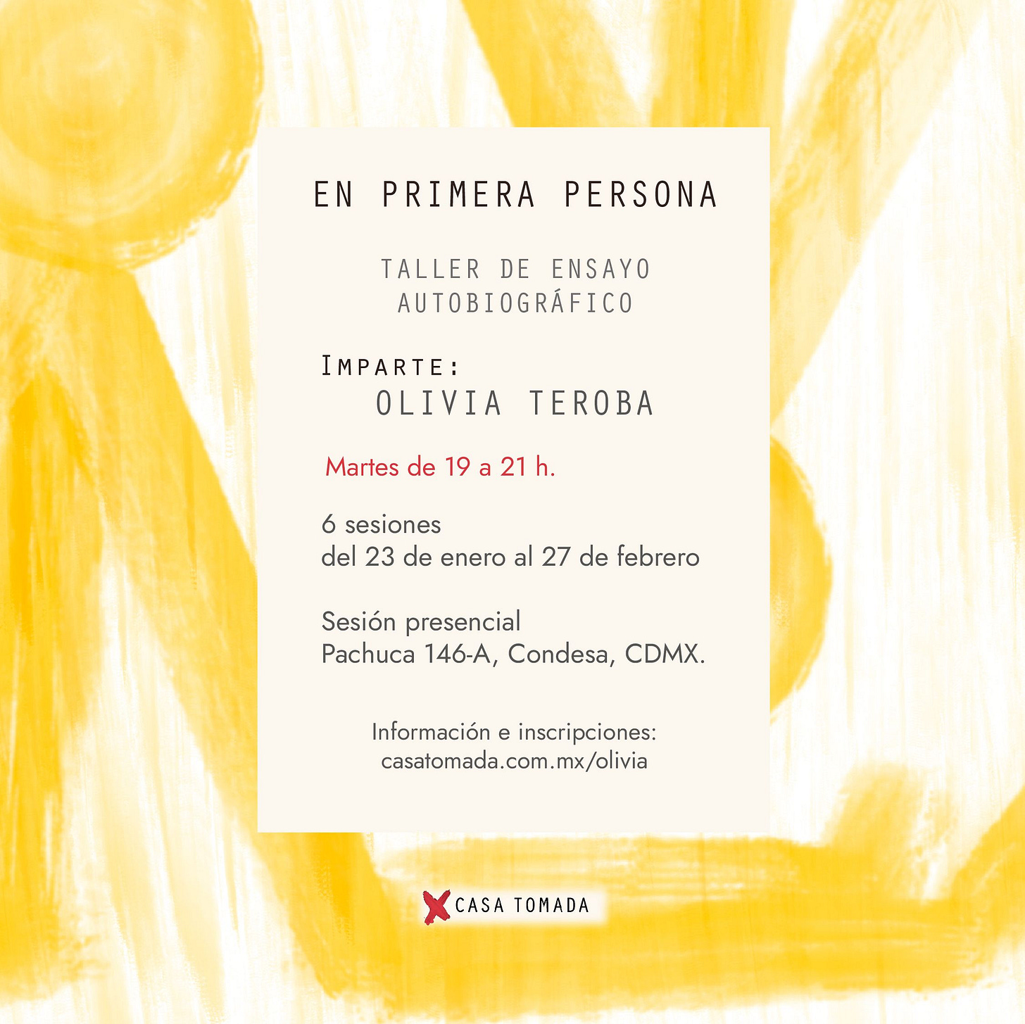 Empezaré el año con un taller presencial en CDMX, en Casa Tomada. Más información e inscripciones en este link.